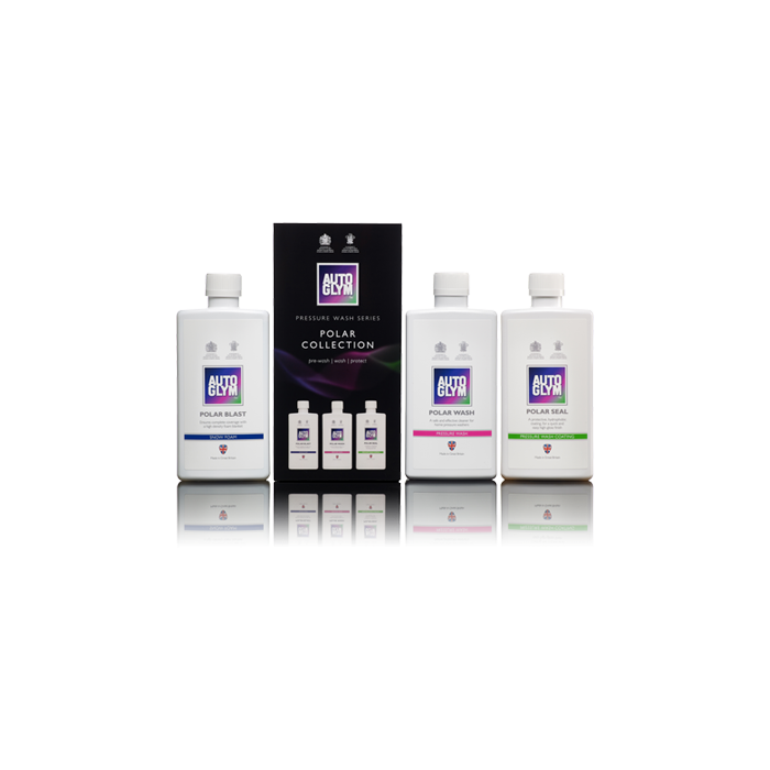 Pol til pol av utvänding bilvård är nu tillgänglig i denna fina boxen, något som gör den till den perfekta presenten till alla som bryr sig om sin bil. Polar Collection består av alla tre Polar produkterna i 500 ml flaskor. Låt något du tycker om, få förtvätta, tvätta och skydda sin bil med högtryckstvätten. Innehåller: Polar Blast 500ml Polar Wash 500ml Polar Seal 500ml Så använder du produkten Polar Blast Innan du sätter igång måste du se till att karossen och fälgarna har svalnat så att de går att röra och att fordonet inte utsätts för direkt solljus. Polarblästring (Polar Blast) kan blandas ut olika beroende på hur fast skum som önskas. En bra utgångspunkt är att blanda 1 dl av produkten med 5 dl vatten i din skumflaska. Justera skumpistolens inställningar efter behov för att öka eller minska mängden skum. Spruta på Polarblästring (Polar Blast) på fordonet, börja nerifrån, och se till att alla utvändiga ytor är täckta, även glas och fälgar. Låt Polarblästring (Polar Blast) sjunka in och börja verka på smutsen i upp till 10 minuter, men se till att det inte torkar in. Skölj rikligt nerifrån och upp. Polar Wash Innan du sätter igång måste du se till att karossen och fälgarna har svalnat så att de går att röra och att fordonet inte utsätts för direkt solljus. Vi rekommenderar en förtvätt med Autoglym Polar Blast för att lösa upp smutsen på ett skonsamt sätt. Om inte, skölj först av med vatten för att lösa upp kraftig förorening. Polar Wash kan användas med olika spädningsgrader beroende på hur kompakt skum som önskas. Vi rekommenderar dock inte att använda en spädningsgrad som överstiger 50:50. Justera skumpistolens inställningar efter behov för att öka eller minska mängden skum. 250 ml blandning bör vara tillräckligt för att täcka en normal bil. Spruta på Polar Wash på fordonet, börja nedifrån och säkerställ att alla utvändiga ytor täcks, inklusive glas och hjul. Rengöringsmedlet kommer att börja lösa upp smutsen på alla ytor. För så grundlig rengöring som möjligt rekommenderar vi att arbeta in skummet med en svamp eller tvättvante. Skölj noggrant nedifrån och upp och torka. Polar Wash kan endast användas med högtryckstvätt och skumpistol. Högtryckstvättprodukter har inte utvecklats för användning på cabrioletter med tygsufletter. Topptips – Avsluta med Polar Seal för att skapa en skyddande och vattenavstötande hinna Polar Seal Innan du sätter igång måste du se till att karossen och fälgarna har svalnat så att de går att röra och att fordonet inte utsätts för direkt solljus. Vi rekommenderar att du börjar med ett snöskum som t.ex. Autoglym Polar Blast för att försiktigt lösa upp smuts och fortsätt sedan med Polar Wash för att avlägsna smuts eller föroreningar från din lack. Det krävs bara en liten mängd Polar Seal. Tillsätt inte mer än 40 ml (tre kapsyler) i din skumflaska och tillsätt sedan minst 200 ml vatten. Detta är det enda som krävs för att täcka din bil. Det finns ingen mening att använda mer än 40 ml eftersom för mycket medel kan påverka finishen negativt. Spruta på Polar Seal på en ren och våt bil och säkerställ att alla utvändiga ytor är täckta, men undvik att applicera direkt på vindrutan. Spola noggrant av och torka din bil för en högglansig finish som är skyddad av en vattenavstötande hinna. Bilen måste torkas av med en duk och får inte lufttorka då det kan ge upphov till vattenfläckar. Använd Autoglym Snabbglas (Fast Glass) för att tvätta av vindrutan och torkarbladen och säkerställa att inga fläckar uppstår. Polar Seal är inte lämplig för användning på cabrioleter med tygsufflett.