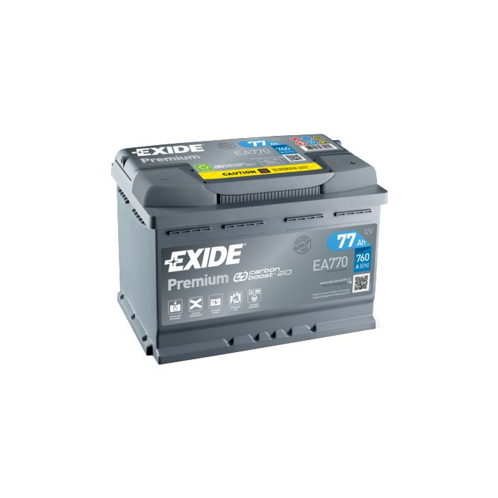 Detta smarta Carbon Boost 2.0-batteri från Exide är på 12V och mäter 190 x 278 x 175 mm. Fästklacken är en B13 och batterikapaciteten är på 77Ah. Batteriet passar till de flesta bilmodeller men vi rekommenderar att du sorterar i vårt utbud med vårt smarta reg-sök innan du klickar igenom din beställning.