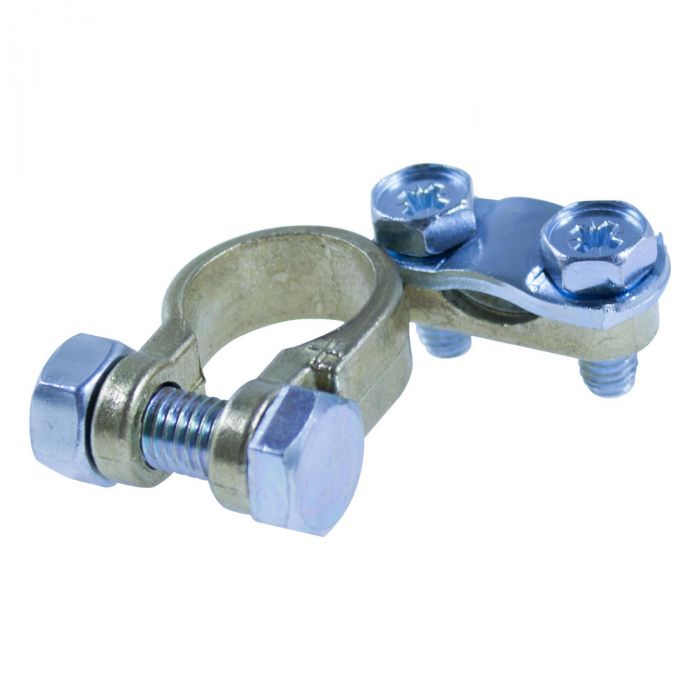 BATTERIKABELSKO, POL HÖGER OM KABEL, (+) 25-35 mm2, OF, LIGHT Batterikabelskor i mässing. FT=Förtent Kabeln fästs mellan 2 bleck. Polstorlek: (+) 19 mm, (-) 17 mm Bultar: Kabel 2 st M6, pol 1 st M8 Ytskydd: Förtent, Obehandlad Anslutning av kabel: Klämning Anslutning runt pol: Skruvförband