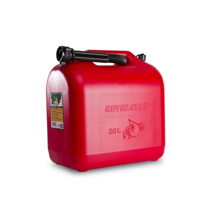 Never Stop – den säkra bränsledunken från svenska Never Stop. Kraftig konstruktion tillverkad av första klassens HDPE (högdensitetspolyeten) med hög materialtäthet om 1000 gram vilket minimerar risken för diffusion av giftiga kolväten. Testad och certifierad för ett övertryck på 250 kPA, vilket är den högst UN märkningen. Behållaren är på ena kortsidan försedd med ett mätfönster vilket bl.a. underlättar blandning av tvåtaktsbränsle och ger en överblick om hur mycket vätska som finns inuti. Utrustad med Autostop påfyllningspip - En ny patenterad påfyllningspip som förhindrar onödigt spill och överfyllning. Auto-stop funktionen motverkar överfyllning, då en ventil stängs och flödet stoppar när kärlet är fullt. Kapacitet 20 L, för Bensin, Diesel och Etanol