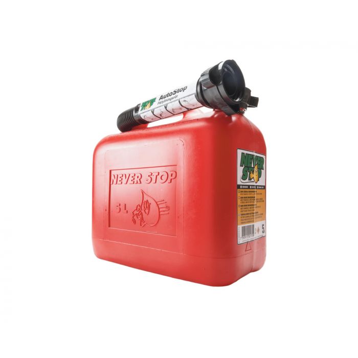 Never Stop – den säkra bränsledunken från svenska Never Stop. Kraftig konstruktion tillverkad av första klassens HDPE (högdensitetspolyeten) med hög materialtäthet om 600 gram vilket minimerar risken för diffusion av giftiga kolväten. Testad och certifierad för ett övertryck på 250 kPA, vilket är den högst UN märkningen. Behållaren är på ena kortsidan försedd med ett mätfönster vilket bl.a. underlättar blandning av tvåtaktsbränsle och ger en överblick om hur mycket vätska som finns inuti. Utrustad med Autostop påfyllningspip - En ny patenterad påfyllningspip som förhindrar onödigt spill och överfyllning. Auto-stop funktionen motverkar överfyllning, då en ventil stängs och flödet stoppar när kärlet är fullt. Utrustad med Autostop påfyllningspip - En ny patenterad påfyllningspip som förhindrar onödigt spill och överfyllning. Auto-stop funktionen motverkar överfyllning, då en ventil stängs och flödet stoppar när kärlet är fullt. Kapacitet 5 L, för Bensin, Diesel och Etanol