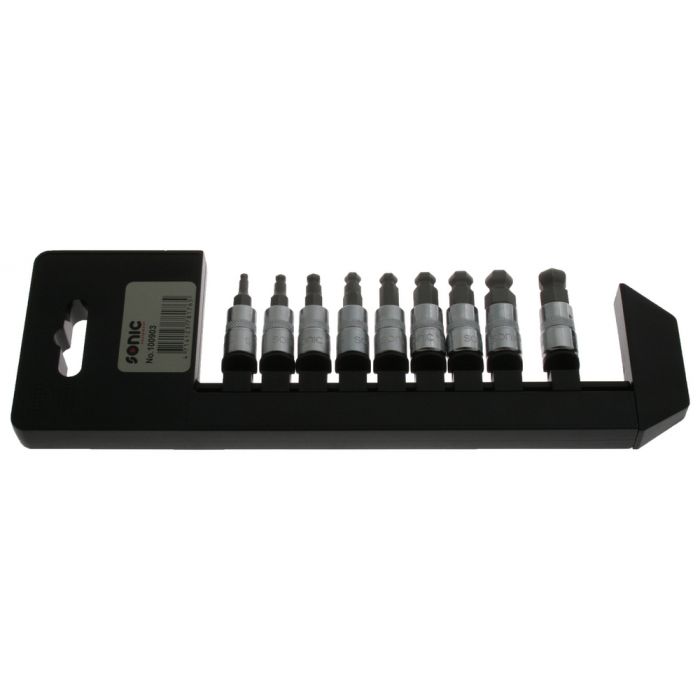 Sonic bitshylssats Insex med kula, 1/4" fattning. Innehåll: 3-10 mm. Tillverkade av Chrome vanadium stål. Praktisk upphängningsbar hållare. Ordning och reda spar tid
