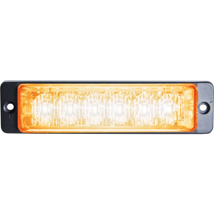 Tunt varningsblixtljus med goda monterings möjligheter. Innehåller 6 orange LED dioder och 20 blixtmönster. Är ECE R65 klass 2 godkänd.