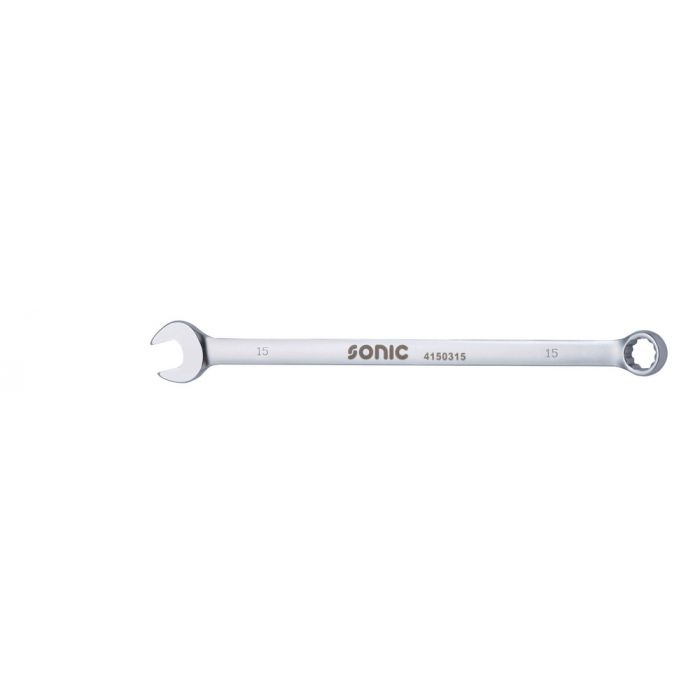 Sonic fasta nycklar modell PUL. En U/ringnyckel med extra långt skaft. Det ger naturligtvis extra kraft, men ger även bättre åtkomlighet. Tillverkade av Chrome Vanadiumstål med mattförkromad ytfinish. Minimerade yttermått för god åtkomst samt snäva toleranser som uppfyller ISO/DIN standard