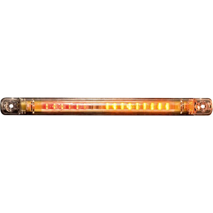 Avlång superslimmad LED baklampa med tre funktioner: bakljus, bromsljus och blinkers.