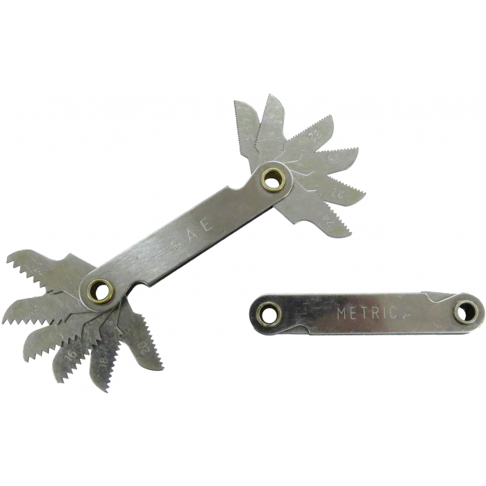 En för metriska standardgängor: stigning 0,5–1,75 mm, 27 och 28 gängor/tum. En för tumgängor (UNC, UNF): 12–40 gängor/tum. Tolv blad. Gängvinkel: 60°.