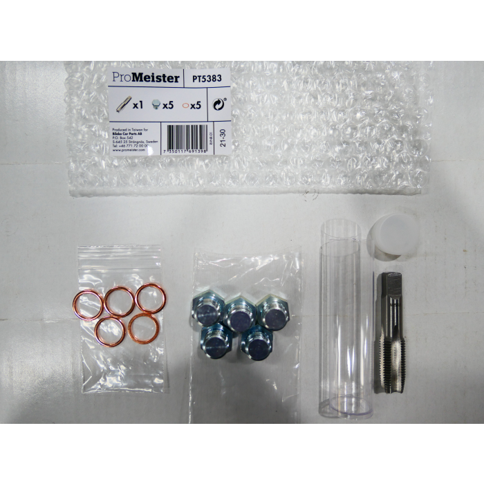 Påfyllningssats M15 x 1.5 för Reparationssats för oljesump, PT5353 Innehåll: 1 gängtapp 5 brickor 5 pluggar