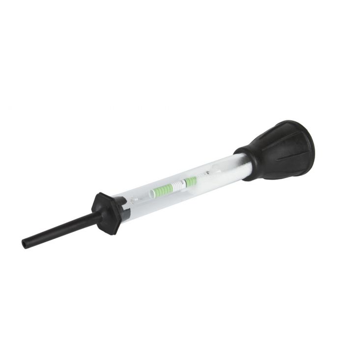Universalprovare för alla typer av glykoler. Anger glykolens fryspunkt. Instruktion: Sug upp kylvätskan tills flottören går fri Håll mätaren lodrätt och avläs nivån på flottörskalan. Den övre delen av skalan avser Metanolbaserad glykol och den nedre delen Etylenbaserad glykol. Gul/Grön skala = Gäller när motorn är varm Vit skala gäller när motorn är kall Viktigt att mätaren sköljs och rengörs med varmt vatten efter användning.
