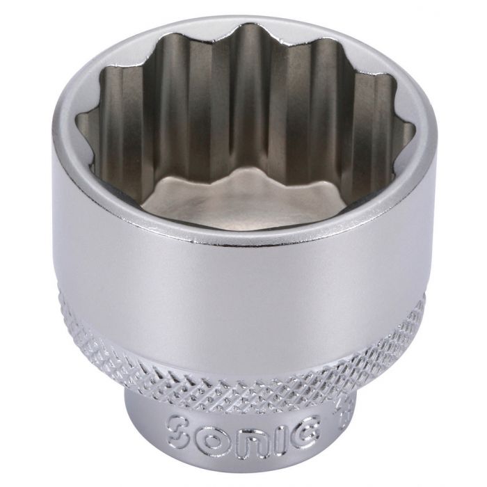 Sonic 12-kant hylsa. Tunnväggig för god åtkomst. Genom hylsans unika geometri på fattningen skonas kanterna då kraften fördelas ut på större ytor. Dessutom ökar livslängden på hylsan. Mattförkromad ytfinish