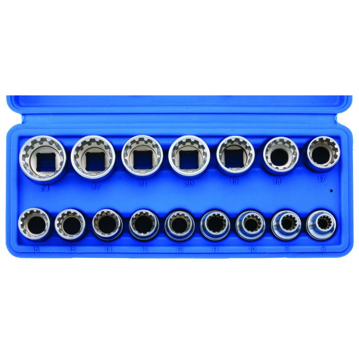 Hylssats 1/2" 12-kant - 15-delar Sonic Multi Grip Socket