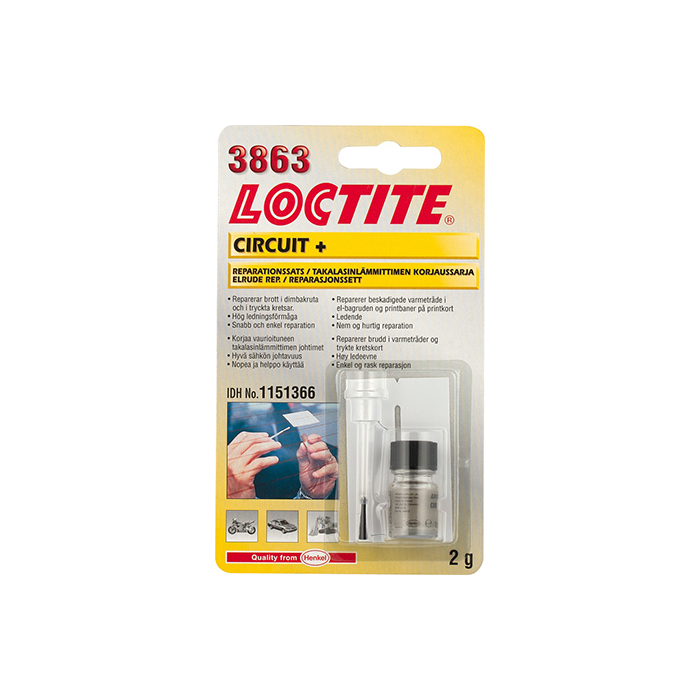 Circuit + reparationssats. Reparerar brott i dimbakruta och i tryckta kretsar. Hög ledningsförmåga. Snabb och enkel reparation. 2 g blister.