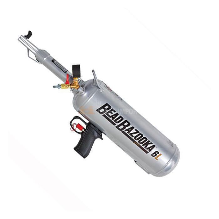 Chockluftare Bead Bazooka, Beadgun, "Generation 2". 6 liter tank, max 10 bars tryck Gaither’s patented Bead Bazooka® combines unique rapid air release technology and easy-to-handle tank for seating tubeless tire beads. Simply fill the tank, aim the redesigned double barrel and FIRE! The instantaneous blast of air from the 6L, 9L or 12L tank will work on agricultural, truck (including super singles), passenger, motorcycle and most other tires. Patented design, RAR system (fully automatic - just press and fire!). “Slotted” double barrel directs the air for best overall lift. Fully TÜV and CE certified. Smaller tank for easier handling in shop and service truck. Lightweight design reduces stress on technician. Goggles and earplugs included.