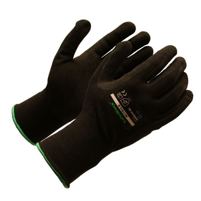 Smidig och mjuk montagehandske utan sömmar med skummad nitril i innerhanden. Den skumbelagda ytan ger ett bra grepp i både torr och fuktig miljö. Mycket slitstark. Högt luftgenomsläpp vilket gör handsken mycket behaglig att bära. Helt silikon och kromfri. Handsken kan användas av nickelallergiker. Material: Nitril-doppad nylon. Doppning: Innerhand, skummad nitril. Oljebeständig. Stickning: 15 nålar/25.4mm. Storlekar: S-XXL.