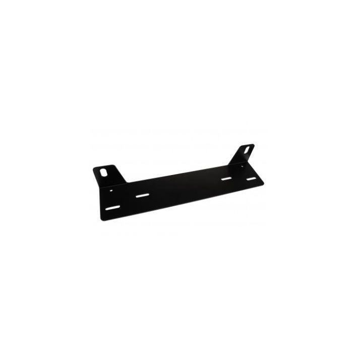 Universal extraljushållare (nummerskylts hållare) i pulverlackerad svart. Passar de flesta bilar där nummerskylten inte är kraftigt försänkt och där stötfångaren inte sticker ut ovanför nummerskylten. Mått på hållaren: Total bredd: 390 mm Total höjd: 88 mm Bredd mellan monteringshål för extraljus: 350 mm (mätt från centrum av hålet) Bredd mellan yttersta hålen som håller själva hållaren i fordonet: 340 mm (mätt från centrum av hålet) Monteringsanvisning: Hållaren monteras bakom nummerskylten. Hål borras på lämpliga ställen i hållaren och stötfångaren för skruv, bult eller popnit. Se till att hållaren sitter så stadigt som möjligt. OBS! Kontrollera innan borrning att inga kablar, slangar eller liknande är placerade inuti stötfång