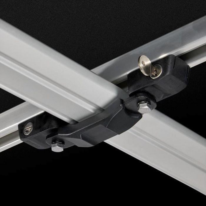 Med innovativa monteringsfästen kan du installera taktält eller lasthållare på bara några minuter – dubbelt så snabbt som vanliga monteringslösningar. För en säkrare installation hörs ett klick med momentnyckeln när det är tillräckligt åtdraget, och monteringsfästena som låser tältet till takräcket ger ytterligare säkerhet.