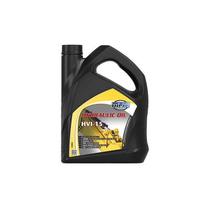 Hydrauloljan HVI 15 är specialutvecklad för tungt belastade hydraulsystem på schaktmaskiner och fast utrustning som måste arbeta under högt tryck och hög temperatur. Denna olja är även väldigt bra för cirkulationssmörjning (utom i turbiner), vakuumpumpar och allmän maskinsmörjning. OBS: Denna olja ska inte användas i system med silverdelar. AFNOR NF E 48-603 HV / NF E 48-690 / NF E 48-691 DIN 51524 part 3 HVLP Denison HF-2 Eaton Vickers I-286-S / M-2950-S ISO 11158 HV / 6743-4 HV