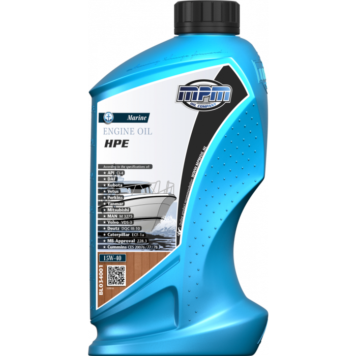 Motorolja HPE 15W-40 Denna High Performance (HPE) marinmotorolja är speciellt utvecklad för smörjning av marina högfartsmotorer som arbetar under svåra förhållanden. Motverkar slitage & sot i både turbo- & kompressorladdade motorer. Uppfyller kraven enligt: API: CI-4, Caterpillar ECF-1a, MTU, DAF Cummins, Perkins, MAN M3275, Mercedes MB-228,3, Scania, Volvo VDS-2 / VDS-3, Yanmar Kubota, Mitsubishi