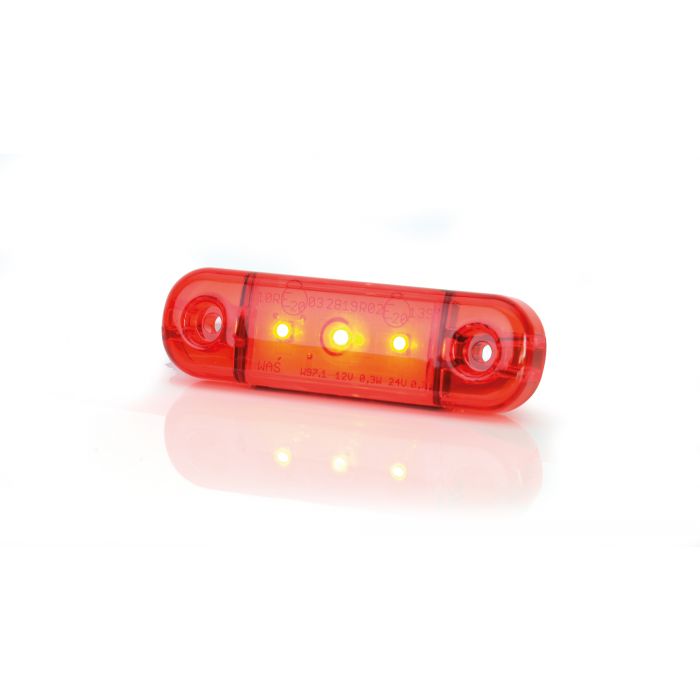Slimmad rött LED positionsljus med 3 dioder och rött glas. Designen underlättar för installationsprocessen och gör lampan mycket användarvänlig.