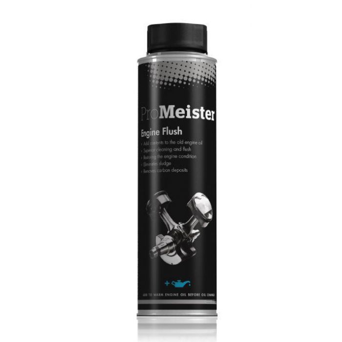 ProMeister Engine Flush är ett starkt olje-/tvättmedelsbaserat additiv som rengör motorn samt förebygger uppbyggnaden av avlagringar, vilket leder till minskad oljeförbrukning. Detta additiv förbättrar även bränsleförbrukningen, ökar motorns effektivitet samt reducerar utsläpp från bensin- och dieselmotorn. Additivet skall fyllas i varmkörd motor. Överlägset rengöringsmedel som rengör och spolar motorns alla oljekanaler. Eliminerar sot och slaggbeläggningar. Möjliggör att ny olja fungerar optimalt i motorn. Eliminerar föroreningar såsom kolavlagringar och vätskor (kondenserat vatten och bränsle). Användning: Töm hela innehållet i motorn, varmkör i 10-15 minuter, töm sen omgående motorn på olja , byt oljefiltret, fyll i ny rätt rekommenderad OEM motorolja.