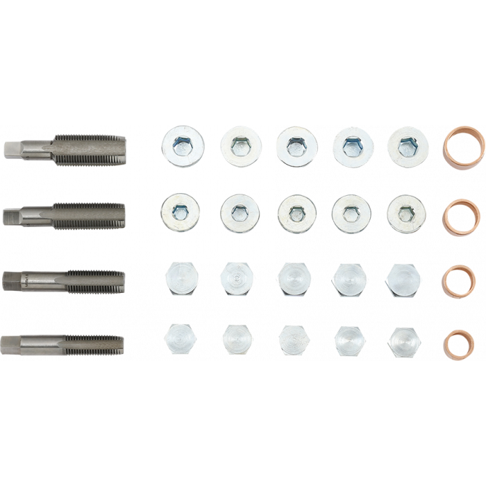 • Komplett reparationssats för skadade gängor i oljesumpen
