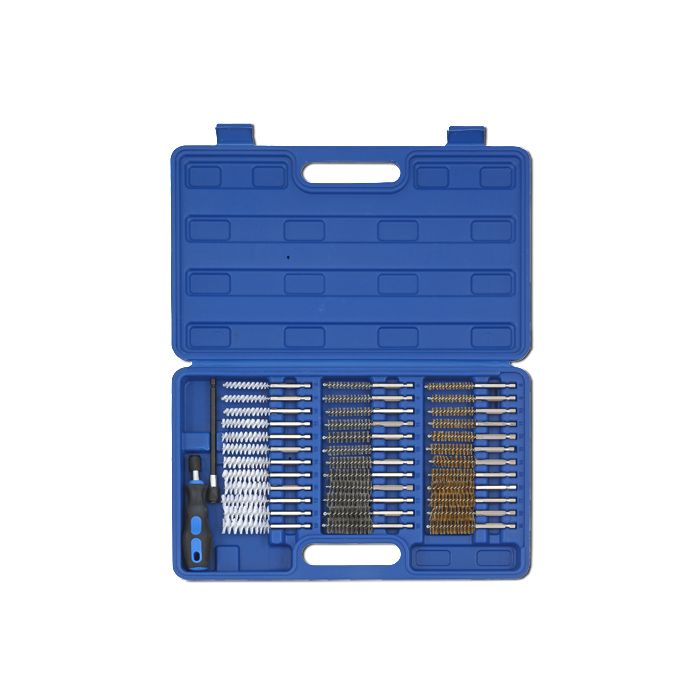 Består av ett handtag med förlängning och 36 olika borstar med 1/4” drivning och 8, 9, 10, 11, 12, 13, 14, 15, 16, 17, 18, 19 mm diameter för rengöring och gradning av cylindrar, bussningar, rör och andra arbetsstycken med nylon-, mässings- och stålbeklädnad.