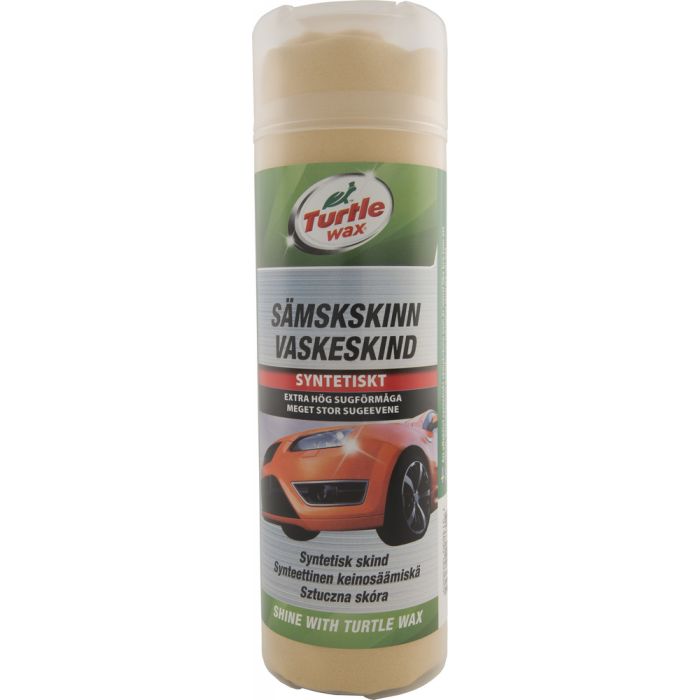 Syntetiskt sämskskinn som är minst lika bra som ett naturskinn. Tål syntetiska rengöringsmedel samt olja och bensin. För avtorkning av lack, rutor och speglar efter tvätten.