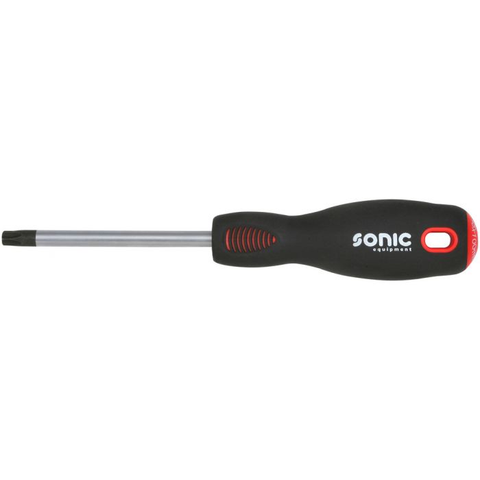 Sonic skruvmejsel med Torxspets med hål. Tvåkomponents handtag för bra ergonomi och god greppkomfort. Resistent mot de mest aggressiva kemikalierna som t ex hydraulolja & bensin.