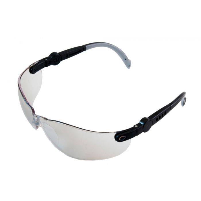 SafeWorx snygga och praktiska skyddsglasögon med justerbar vinkel och skjutbar skalm gör att den passar alla ansiktsformer. Den smidiga skalmen gör att glasögat går bra att använda i kombination med hjälm och hörselkåpor. Brett synfält. Tillverkade av polykarbonat som är mycket motståndskraftigt mot splitter, gnistor och annan yttre påverkan. Lins: Antiscratch