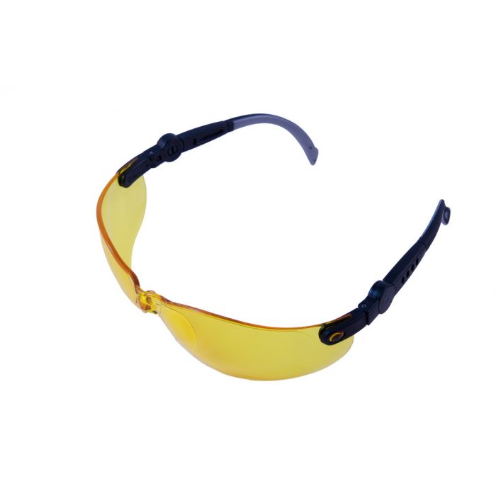 SafeWorx snygga och praktiska skyddsglasögon med justerbar vinkel och skjutbar skalm gör att den passar alla ansiktsformer. Den smidiga skalmen gör att glasögat går bra att använda i kombination med hjälm och hörselkåpor. Brett synfält. Tillverkade av polykarbonat som är mycket motståndskraftigt mot splitter, gnistor och annan yttre påverkan. Lins: Antiscratch
