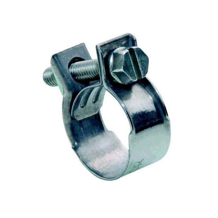 Klämman har uppvikta kanter för att vara skonsam mot slangen.