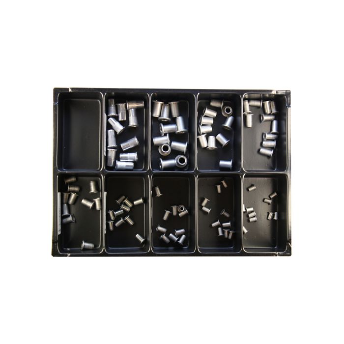 Sortimentinsatsen bestårav 90 delar enligt nedan: 1st 7600010 SORTIMENTINSATS 10-FACK 10st 429410 POPNUT M4 MAX TJ.1,0 10st 429430 POPNUT M4 MAX TJ.3,0 10st 429510 POPNUT M5 MAX TJ.1,0 10st 429530 POPNUT M5 MAX TJ.3,0 10st 429615 POPNUT M6 MAX TJ.1,5 10st 429645 POPNUT M6 MAX TJ.4,5 10st 429815 POPNUT M8 MAX TJ.1,5 10st 4291035 POPNUT M10 MAXTJ.3,5 10st 4291060 POPNUT M10 MAXTJ.6.0