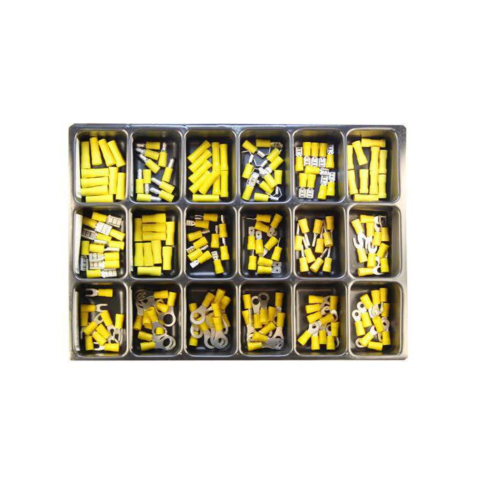 Sortimentinsatsen bestårav 180 delar enligt nedan: 1st 7600018 SORTIMENTINSATS 18-FACK 10st RINGKABELSKO A4643R 10st RINGKABELSKO A4653R 10st RINGKABELSKO A4665R 10st RINGKABELSKO A4685R 10st RINGKABELSKO A4610R 10st GAFFELKABELSKO A4643G 10st GAFFELKABELSKO A4653G 10st STIFTKABELSKO A4630SR 10st FLATSTIFT A4607H 10st FLATSTIFTSHYLSA A4604FL8 10st FLATSTIFTSHYLSA A4607FL 10st FLATSTIFTSHYLSA A4609FL 10st FLATSTIFTSHYLSA A4604FLF8 10st FLATSTIFTSHYLSA A4607FLF 10st FÖRGRENINGSHYLSA A4607FLH 10st SKARVHYLSA A4652SK 10st RUNDSTIFT A4605HA 10st RUNDSTIFTSHYLSA A4605HO