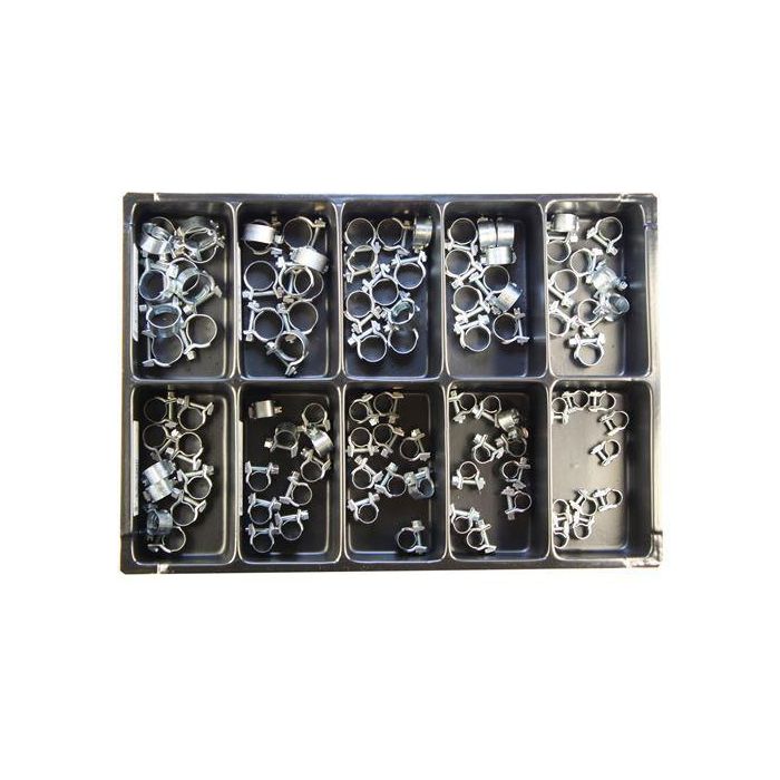 Sortimentinsatsen bestårav 100 delar enligt nedan: 1st 7600010 SORTIMENTINSATS 10-FACK 10st 30087008 MINIKLÄMMA 8mm, W1 10st 30087009 MINIKLÄMMA 9mm, W1 10st 30087010 MINIKLÄMMA 9.5-10mm, W1 10st 30087011 MINIKLÄMMA 10-11mm, W1 10st 30087012 MINIKLÄMMA 12-13mm, W1 10st 30087013 MINIKLÄMMA 12-13mm, W1 10st 30087014 MINIKLÄMMA 13-14mm, W1 10st 30087015 MINIKLÄMMA 14-15mm, W1 10st 300870155 MINIKLÄMMA 15-17mm, W1 10st 300870157 MINIKLÄMMA 16-18mm, W1