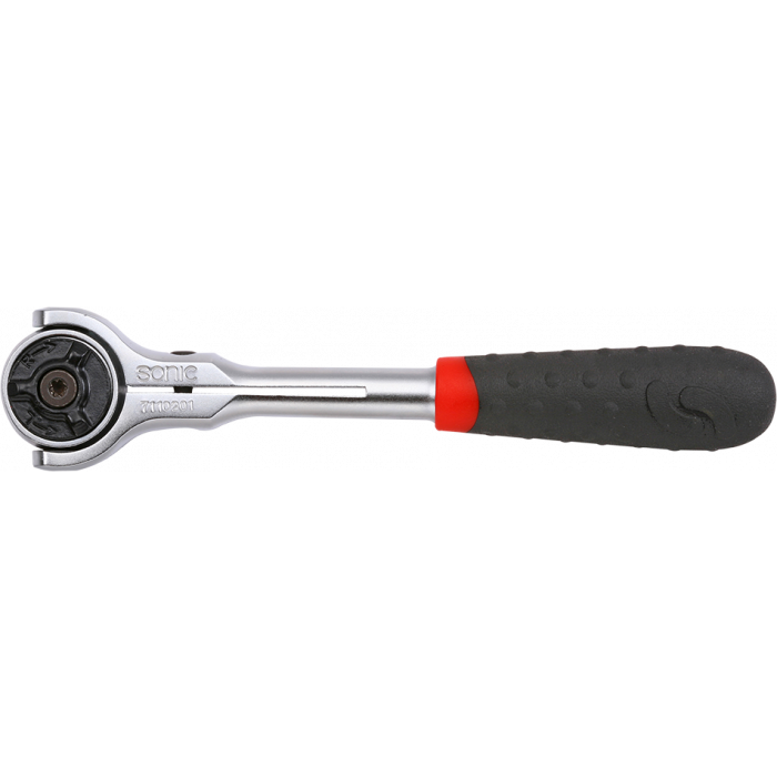 Sonic spärrskaft 1/4" med roterbart huvud. Ger bra åtkomst i trånga utrymmen samt att man genom att ställa spärrhuvudet axiellt får mejselfunktion. 72 tänders spärrfunktion. Tvåkomponets handtag för bra och säker greppkomfort. Tillverkade av Chrome Vanadiumstål med mattförkromad ytfinish