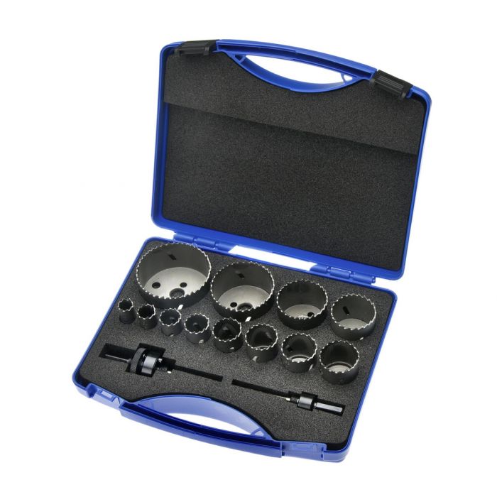 • Sats med 16, 19, 22, 25, 29, 32, 35, 38, 45, 51, 64, 76mm hålsågar samt hållare