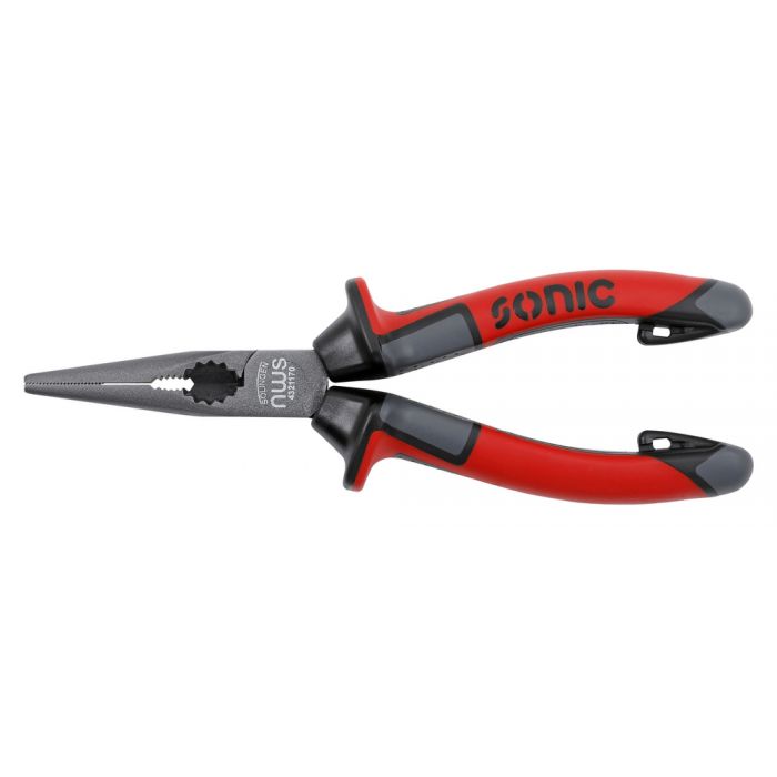 Sonic/NWS spetstång med skär. Precisionshärdade käftar med god klippförmåga, 2.2 mm hård ståltråd. Tvåkomponents ergonomiskt handtag för bästa greppkomfort. Klippkapacitet: Koppar 3.9 mm, Ståltråd 3.2 mm, Hård ståltråd 2.2 mm