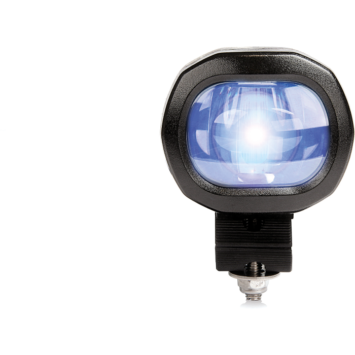 En arbetslampa anpassad för truckarbete. Lampan avger ett blått ljus i form av ett streck som används för att uppmärksamma andra om truckens position och arbetsområde.