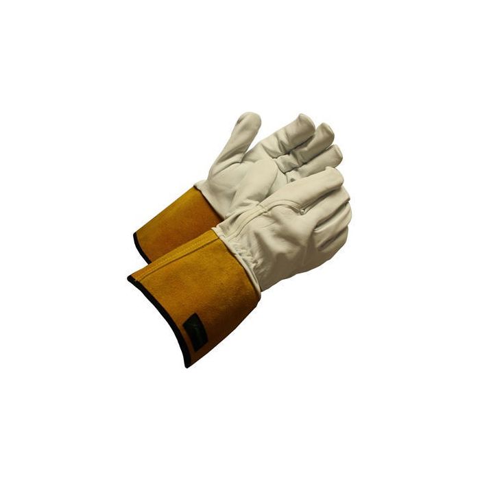 Svetshandske med fingertoppskänsla. Lämpar sig vid varma arbeten som t.ex. TIG svetsning. Handsken är sydd i getnarv av högsta kvalitét och har en 10 cm lång krage i nötspalt. Handsken är sydd med värmetålig kevlartråd. Dubbla sömmar på utsatta ställen. Resår vid handled för bättre passform.