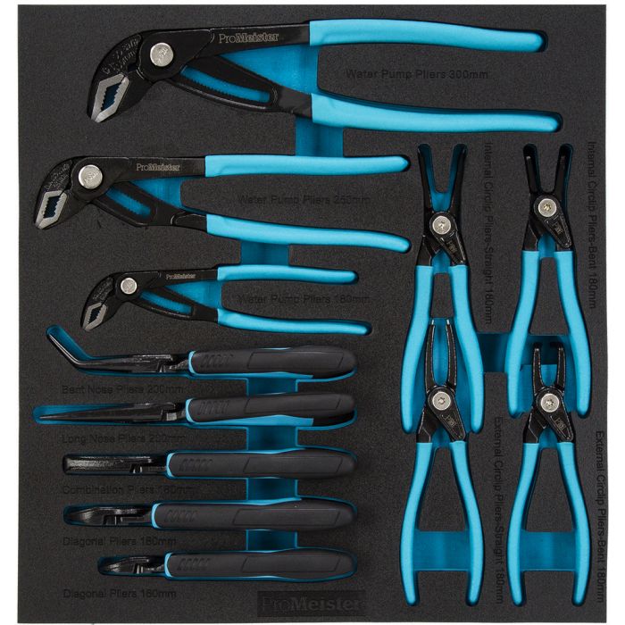 Innehåll Storlek Polygriptänger: 180, 250, 300mm Spårringstänger: Invändig böjd, 180mm Invändig rak, 180mm Utvändig böjd, 180mm Utvändig rak, 180mm Spetstång, böjd: 200mm Spetstång: 200mm Kombinationstång: 180mm Sidavbitare: 160, 180mm