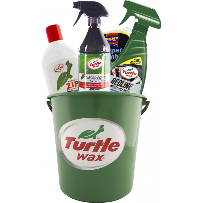 • Innehåller Turtle Bilschampo med vax, Turtle Micro Power Miljövänlig Avfettning, Turtle Wax Fälgrengöring, Tvättsvamp Jumbo och Turtle Tvätthink