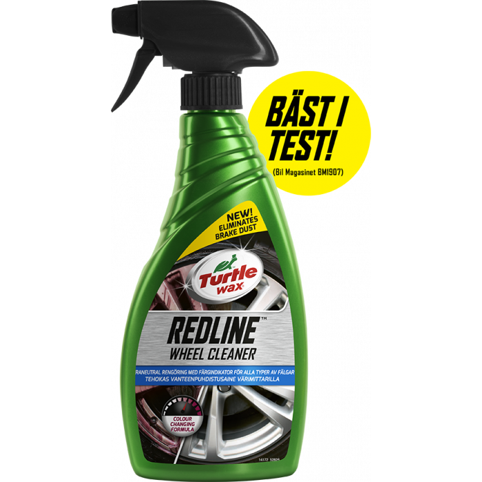 Turtle Wax Redline Wheel Cleaner är en unik pH-neutral fälgrengöring som blir röd när den löser upp bromsdammet. En syra-neutral formula som inte skadar fälg, navkapslar eller hjulbultar. Kan verka mycket längre på fälgarna än syrabaserade eller alkaliskt baserade fälgrengöringar. 2 x 500ml