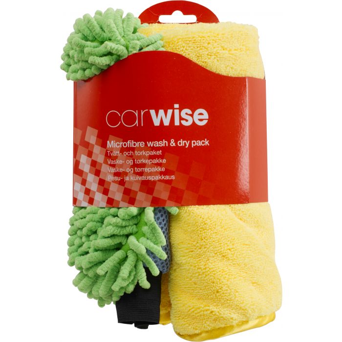 Detta paket består av en tvätthandske i mikrofiber och en mikrofiberduk för att torka bilen efter tvätt.