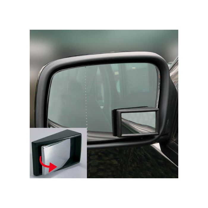 Vidvinkelspegel med justerbart glas - eller "döda-vinkeln"-spegel. Ökar sikten vid filbyten med 25 %. Lätt att montera med dubbelhäftande tejp som medföljer. Passar höger eller vänster sida.